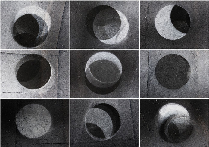 Tras cada jornada, el artista a destajo nunca supo lo que dejaba al partir: 9 eclipses de luna, accidentalmente formados.